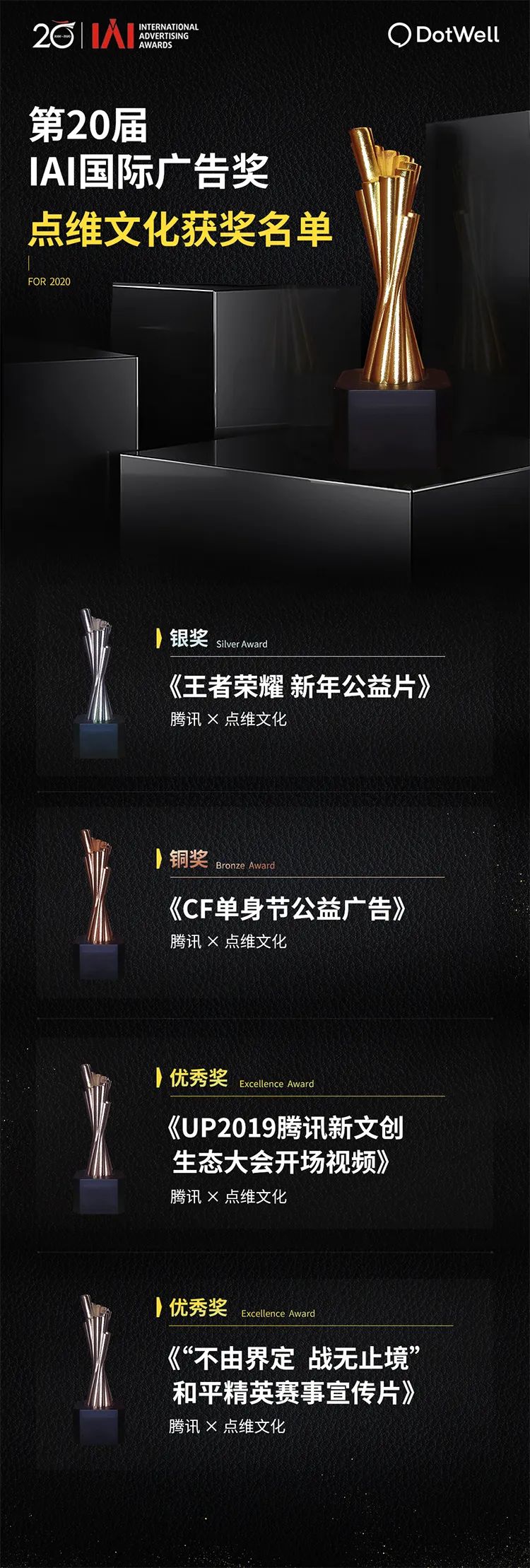 近日,IAI执委会正式公布第20届IAI国际广告奖获奖名单,点维再次揽获4项大奖。